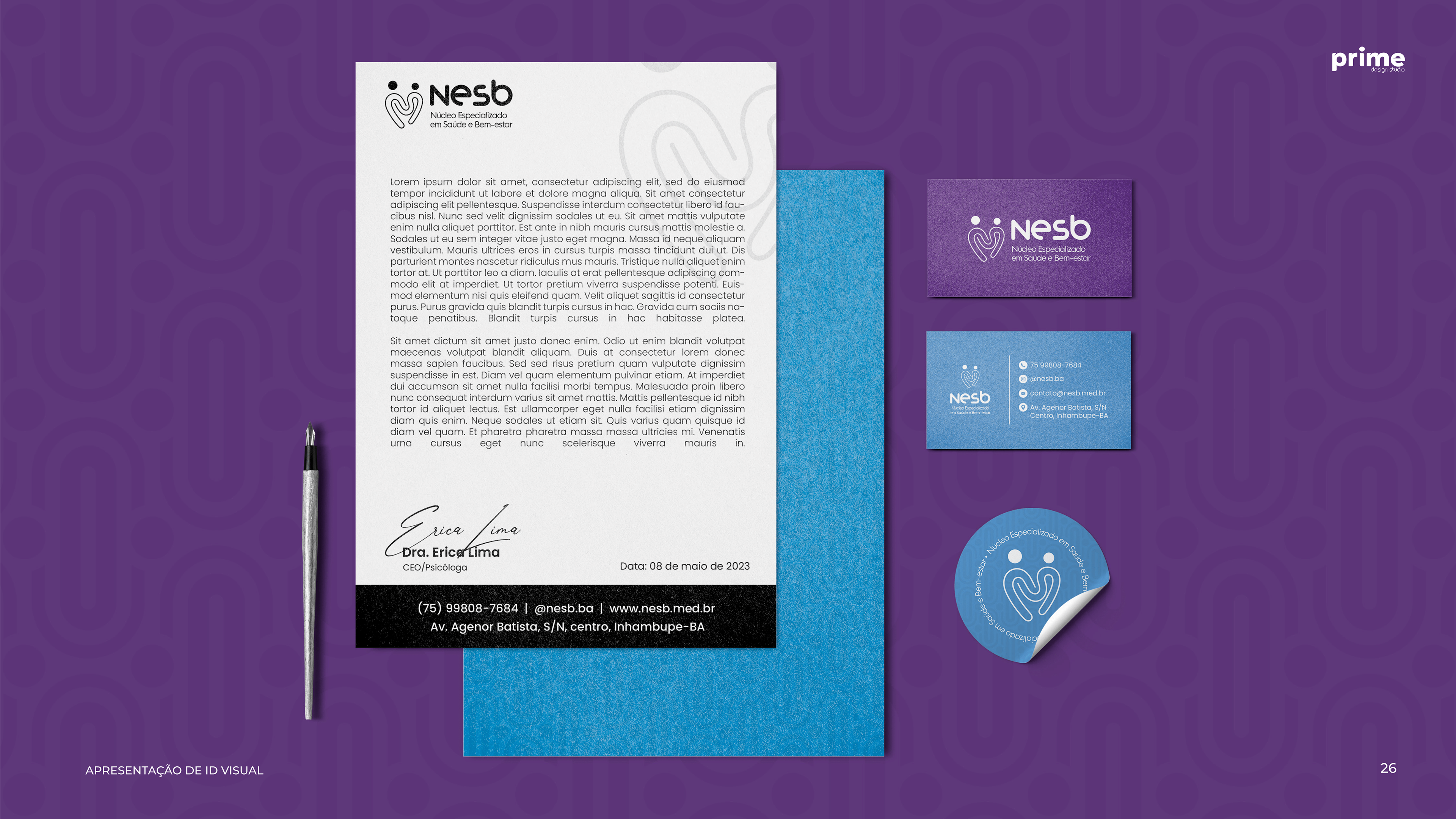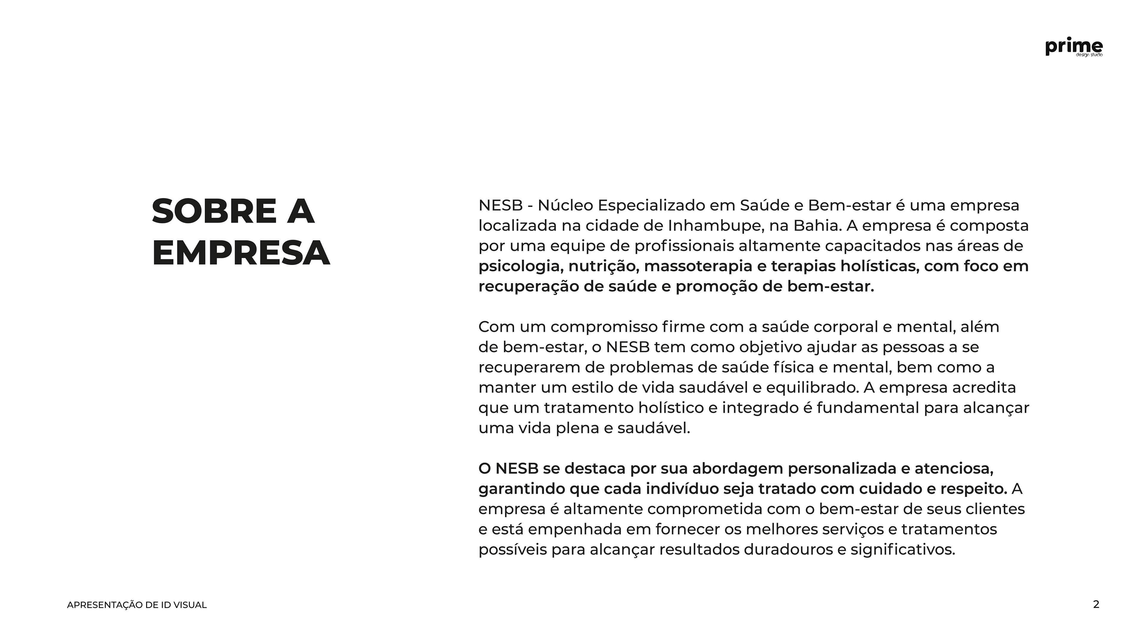 Projeto de identidade visual, desenvolvido para a empresa NESB - Núcleo Especializado em Saúde e Bem-estar.